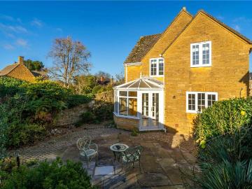 An individually designed 3 storey home blending contemporary style with practical family living. No onward chain.Accommodation comprises; Entrance hfall, dining hall, sitting room, kitchen/breakfast room, family room, utility, bedroom 4, bathroom, 2 lower ground floor bedrooms and shower room, first floor bedroom with en-suite bathroom and eaves storage.Parking and generous rear garden. This remarkable three-storey residence offers far more than first impressions suggest. Set back from the road the property combines a contemporary and highly practical layout with generous, versatile living spaces, all complemented by breathtaking south-westerly views towards Cleeve Common and Bredon Hill. The accommodation is arranged to maximise both light and outlook, featuring elegant reception rooms and a superb open-plan kitchen and sitting area that forms the heart of the home—ideal for both everyday living and entertaining. A well-appointed principal bedroom with ensuite bathroom provides a peac