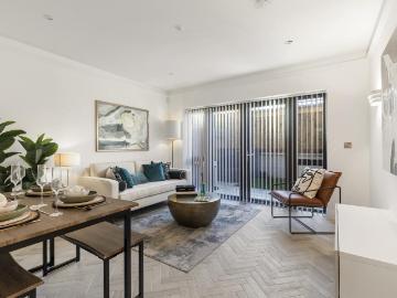 Plot 6 Overton Place is the ideal home for a growing family. The high end kitchen is to the front of the home with a separate Living/Dining room to the rear with the landscaped garden accessed via a set of french doors. There is also a guest wc situated on the ground floor. The principal bedroom along with its own ensuite and walk-in wardrobes occupies the first floor with three further bedrooms, a study, a family bathroom and additional ensuite to bedroom 3 completing the upper floors. Specification: - Modern contemporary super matt finish kitchen with soft close doors and drawers. Quartz worktops with 100mm upstand (full height behind cooker). Single bowl sink. Selection of quality integrated appliances: Fridge freezer (70:30), Dishwasher, Multi-function electric tower oven, Electric induction hob, Extractor hood, Washer dryer. - Contemporary bathrooms with white sanitaryware and high quality chrome brassware. Bathtubs with feature LED lights underneath the bath panel and inside feat