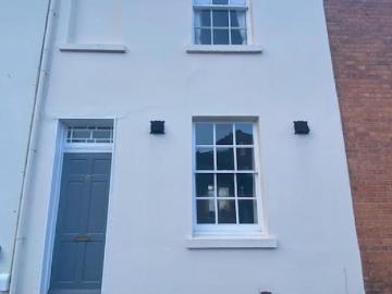 The property is immediately striking from the front, with its classic red brick façade, bay window and distinctive entrance. Inside, the accommodation is bright, well-proportioned and thoughtfully arranged. To the front sits a welcoming living room, centred around a feature fireplace with timber surround and complemented by a large bay window with plantation shutters, allowing excellent natural light while maintaining privacy. High ceilings and picture rails reinforce the home’s period charm. A second reception room provides a versatile dining or family space, again featuring a fireplace and offering generous proportions for entertaining or everyday living. To the rear, the extended kitchen is both practical and stylish. Fitted with contemporary high-gloss cabinetry, quality worktops and integrated appliances including oven, gas hob, dishwasher and washing machine, the space flows naturally towards a bright garden area with roof lights and French doors opening onto the patio. The layou