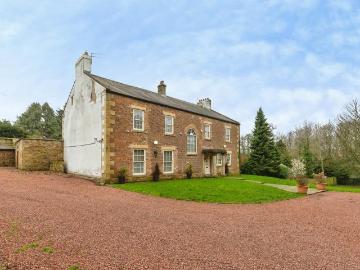 We are pleased to offer to the market this superb Grade II-listed Georgian residence combing the charm of a traditional family home with the benefits of modern living. Set back from the road within approximately 1.97 acres of mature gardens, the property offers ample parking via a sweeping gravel driveway and turning circle, alongside a detached double garage, additional stone outbuildings, and a versatile workspace. The home retains a wealth of character features throughout, including sliding sash windows, high ceilings, wood panelling, and multiple multifuel stoves, one of which is linked to a back boiler, while the overall presentation reflects careful restoration and refurbishment by the current owners.The main entrance is positioned to the rear, opening into a long, light-filled hallway with wood-effect tiled flooring, wall panelling, and a striking picture window overlooking the front garden. From here, two generous reception rooms sit to one side, both featuring sash windows, hi